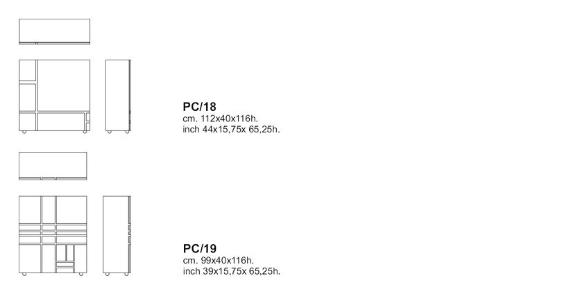 ANNÉE 1975 - ANNÉE DE PRODUCTION 2009 Armoires avec portes et tiroirs inspirés des chefs-d'œuvre les plus graphiques de Piet Mondrian. Les deux armoires sont laquées mates dans des accouplements de noir, blanc, bleu, rouge et jaune. Installé sur des roulettes en caoutchouc grises.