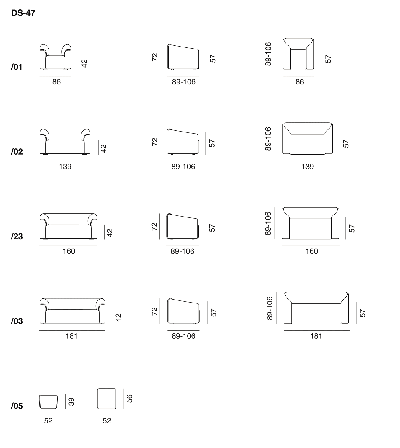 Expression sans équivoque grâce à 5 mm en cuir de cou épais avec des plis - un classique de caractère qui a largement contribué à la renommée de De Sede , témoin de son artisanat traditionnel sans égal. Le cuir est placé dans tous les éléments dui composent les canapés en une seule pièce de l'extérieur vers l'intérieur. La combinaison de SEDEX avec couverture en tissu non tissé épais assure un grand confort d'assise.